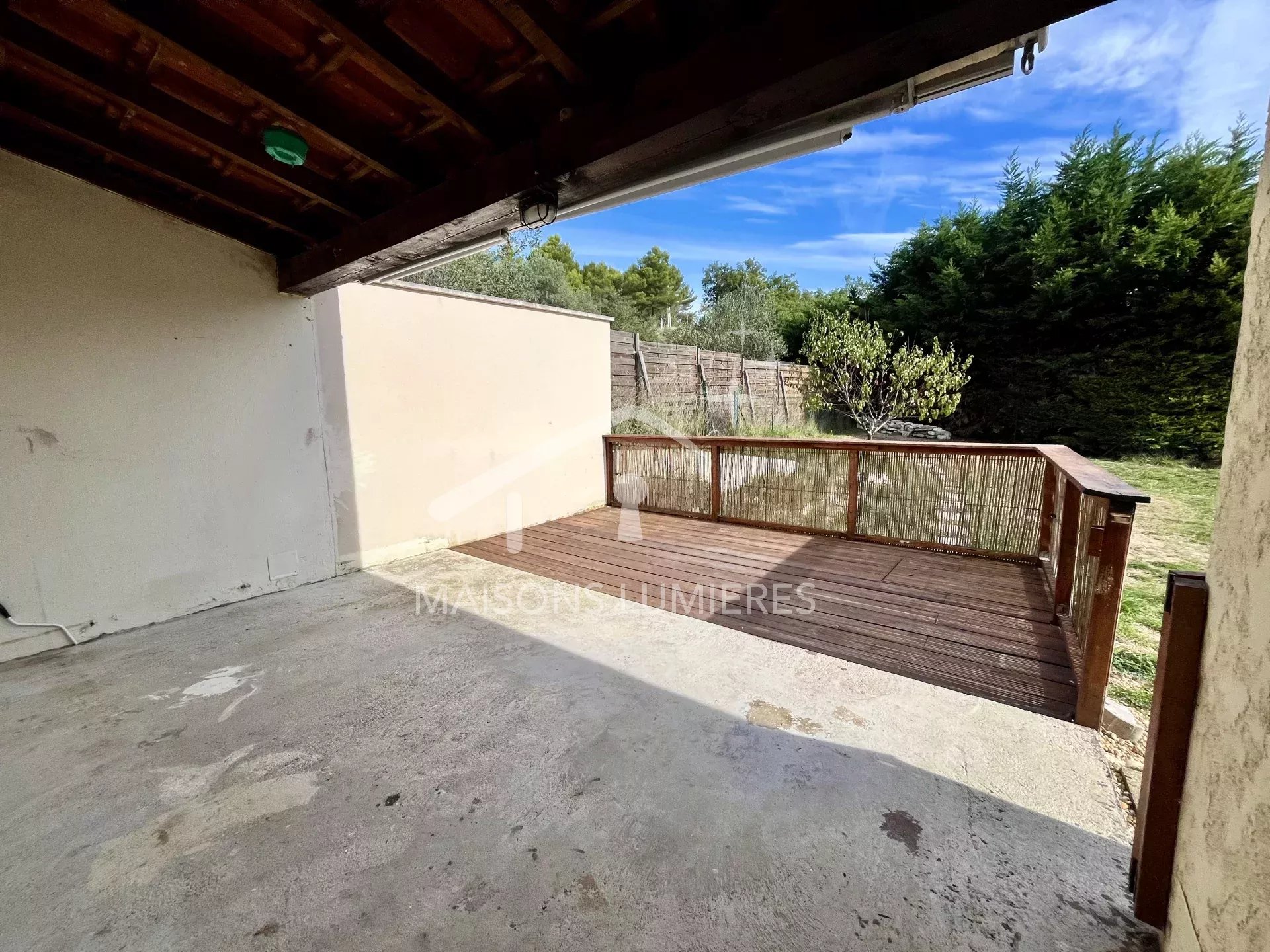 Côté extérieur, deux terrasses pour une exposition différente en fonction des saisons, un abri voiture ainsi qu'un vaste jardin clos.